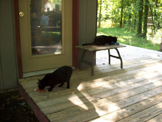 In regards to finding peaceful things, this little guy found me instead. He actually found the neighbors down the street, Roy and Sharee, but of course every cat I encounter instantly becomes MINE. Two years ago they were found by lovely Blackie. Now Blackie has a new friend, Deuce (as in black cat number two). The two seem to get along pretty well and Deuce loves the numerous dogs at Roy and Sharee's house. Blackie, well not so much!